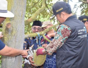 Kabar1lamongan.com – Memiliki jenis tanah yang subur dan dapat dengan mudah ditanami berbagai jenis tanaman mulai dari tanaman padi, jagung, hingga jenis buah-buahan seperti rambutan, kelengkeng, juga durian, Desa Sugihan Kecamatan Solokuro merintis desanya menjadi Desa Agrowisata. Salah satu tanaman yang menjadi andalan Desa Sugihan ini adalah durian, dengan total jumlah pohon durian mulai dari yang baru tanam hingga yang berusia puluhan tahun sebanyak kurang lebih 3.000 pohon.