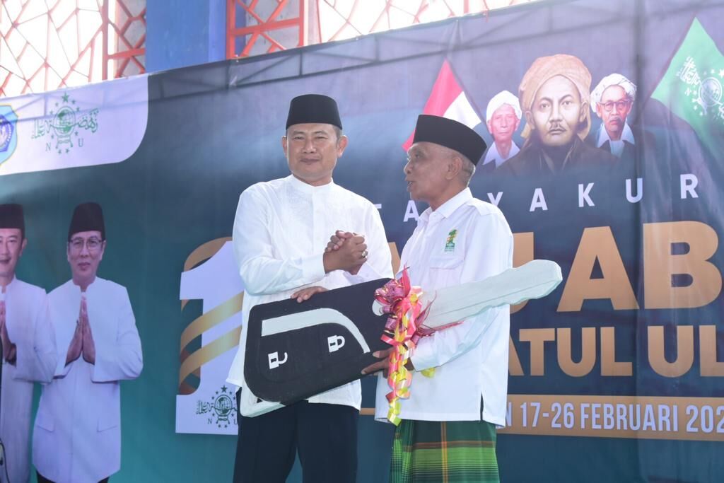 “Tentu ini menjadi momen yang penuh makna, dan akan menjadi sejarah bagi kita semua. Kenapa bersejarah? Karena peringatan seperti ini baru akan ditemui 100 tahun lagi. Sebagai kado 1 abad NU, pada momen ini saya atas nama Pemerintah Kabupaten Lamongan menyerahkan satu mobil operasional untuk PCNU Lamongan. Semoga dapat memberikan manfaat,” ucap Pak Yes.