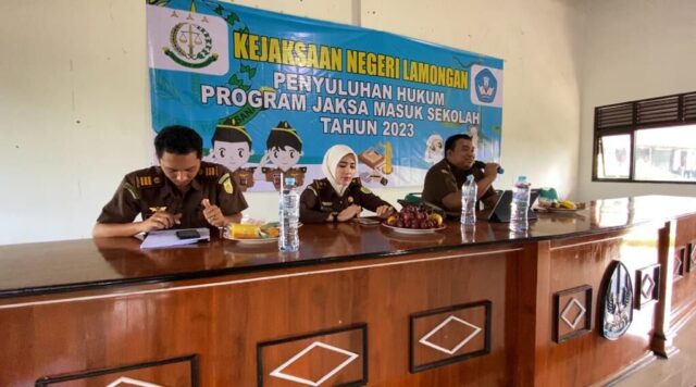 Kabar1lamongan.com – Kegiatan kedua kalinya untuk program jaksa masuk sekolah, Kejaksaan Negeri (Kejari) Lamongan melalui Bidang Intelijen menggelar program Jaksa Masuk Sekolah, guna membekali wawasan hukum kelasa siswa siswi di SMA Negeri 1 Karangbinangun, Kabupaten Lamongan, Provinsi Jawa Timur, yang bertempat di Auditorium SMA setempat, Rabu pagi (22/2/2023).