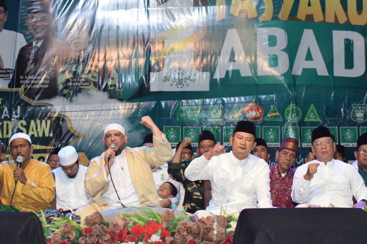Hadir memberi sambutan sekaligus menutup rangkaian acara tasyakuran 1 Abad NU yang dimulai sejak 17 Februari lalu, Bupati Lamongan Yuhronur Efendi mengucap syukur dan berterima kasih atas peranan NU dalam pembangunan satu abad ini.