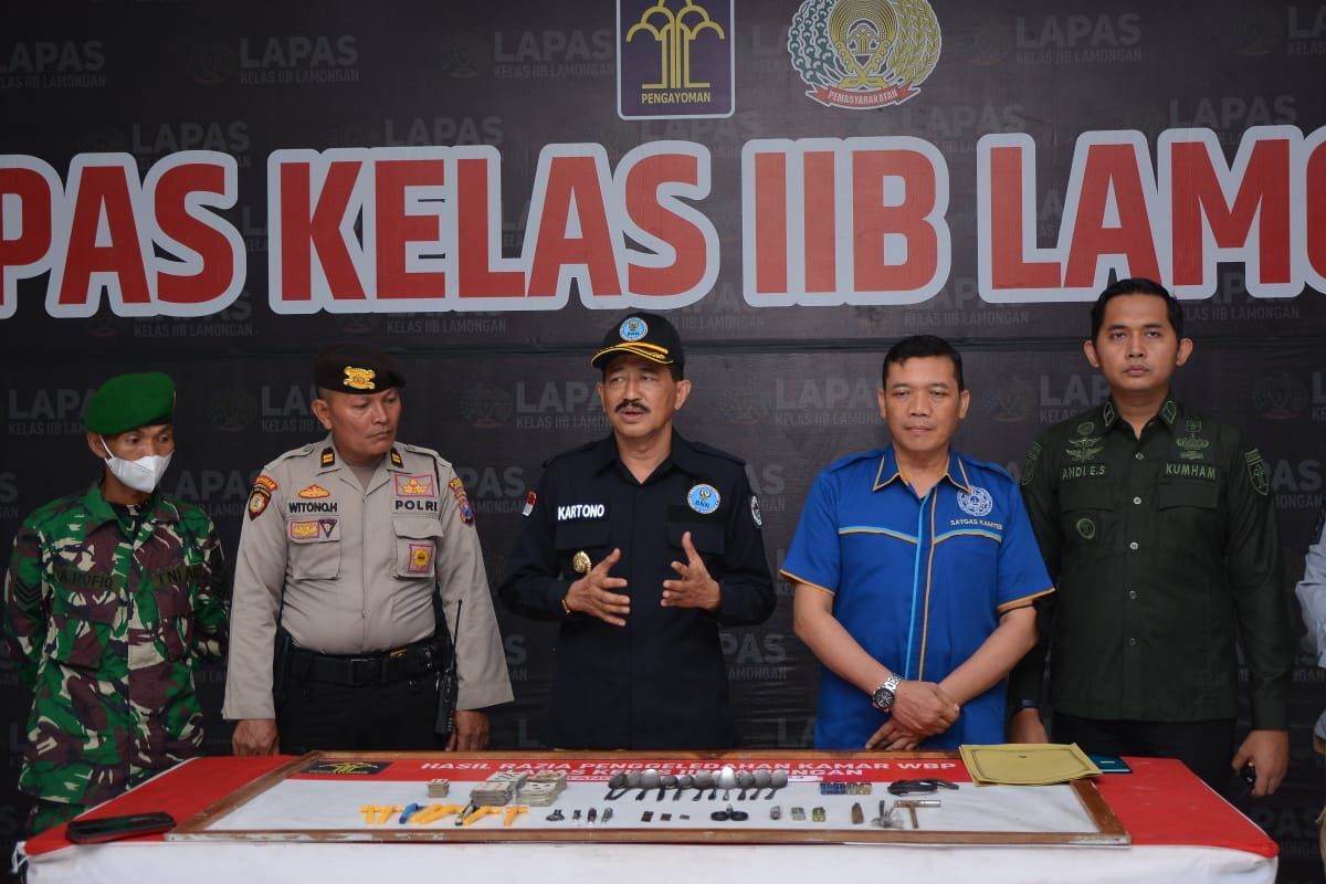 Kabar1lamongan.com – Gelar razia gabungan bersama Aparat Penegak Hukum (APH), Lapas Kelas IIB Lamongan Kanwil Kemenkumham Jatim deklarasikan Zero Halinar (Handphone, Pungli, Narkotika) dan akselerasi Pencegahan, Pemberantasan, Penyalahgunaan, dan Perdaran Gelap Narkoba (P4GN), Selasa (28/02/2022).