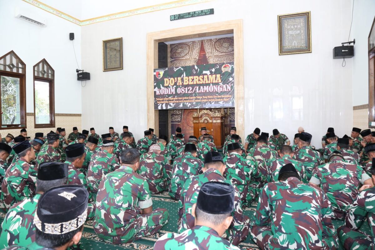 “Kegiatan Doa bersama bertujuan sebagai wujud ungkapan rasa Syukur kepada Tuhan Yang Maha Esa dan memohon keselamatan, kelancaran serta kesuksesan dalam rangka melaksanakan tugas yang dihadiri Komandan Kodim 0812/Lamongan, Kepala Staf Kodim 0812, Perwira Staf, Danramil Jajaran serta Prajurit Kodim 0812 Lamongan.