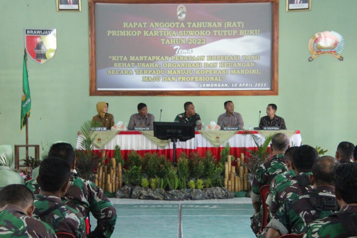 Kabar1lamongan.com, -Dalam Upaya meningkatkan kesejahteraan prajurit dan ASN, Kodim 0812/Lamongan menyelenggarakan Rapat Anggota Tahunan (RAT) Primkop Kartika Suwoko tutup buku tahun 2022 yang bertempat di Aula Kadetsuwoko Kodim 0812/Lamongan. Senin (10/04/2023).