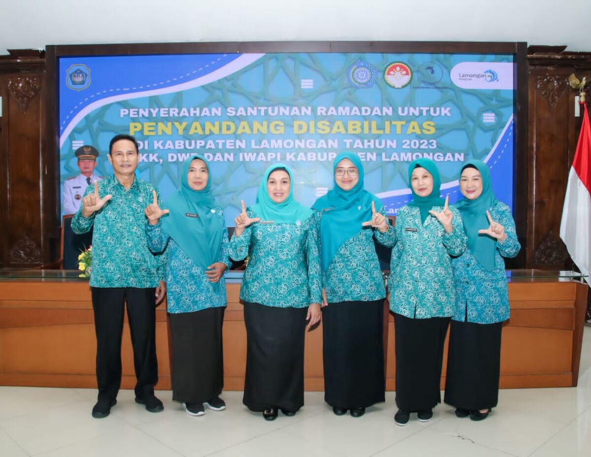 Kabar1lamongan.com – TP PKK (Tim Penggerak Pemberdayaan dan Kesejahteraan Keluarga) Kabupaten Lamongan bekerjasama dengan Dharma Wanita Persatuan Lamongan, dan IWAPI (Ikatan Wanita Pengusaha Indonesia) Lamongan, pada Selasa (18/4) di Pendopo Lokatantra, menyerahkan Santunan Ramadhan untuk 115 Penyandang Disabilitas se Kabupaten Lamongan yang tergabung dalam naungan Persatuan Tuna Netra dan Griya Qur’an Difabel.