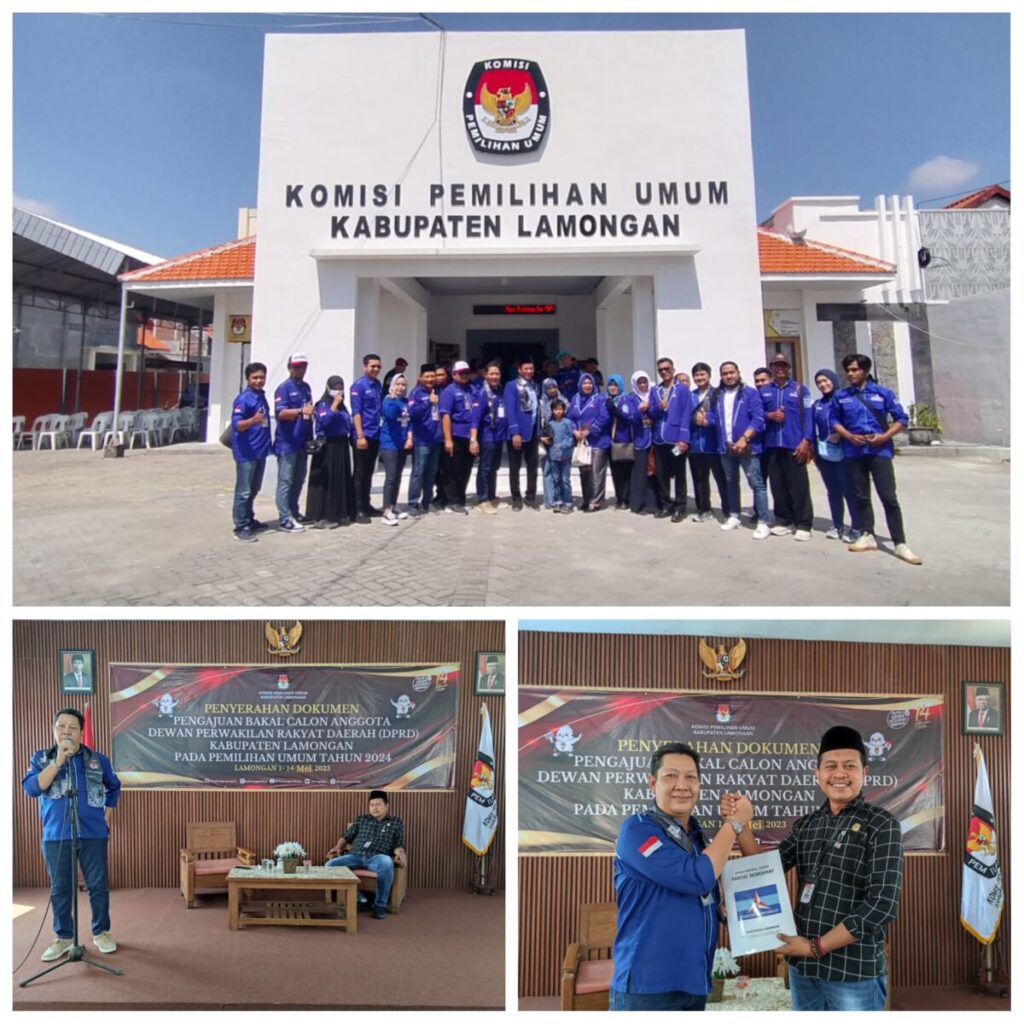 Kabar1lamongan.com – Ketua DPC Demokrat Lamongan Ir. Sugeng Santoso Bersama Pengurus dan Bacaleg Demokrat Hari ini, Minggu siang, 14 Mei 2023 Mendaftarkan 50 Bacaleg Demokrat Kabupaten Lamongan di Kantor KPUD.