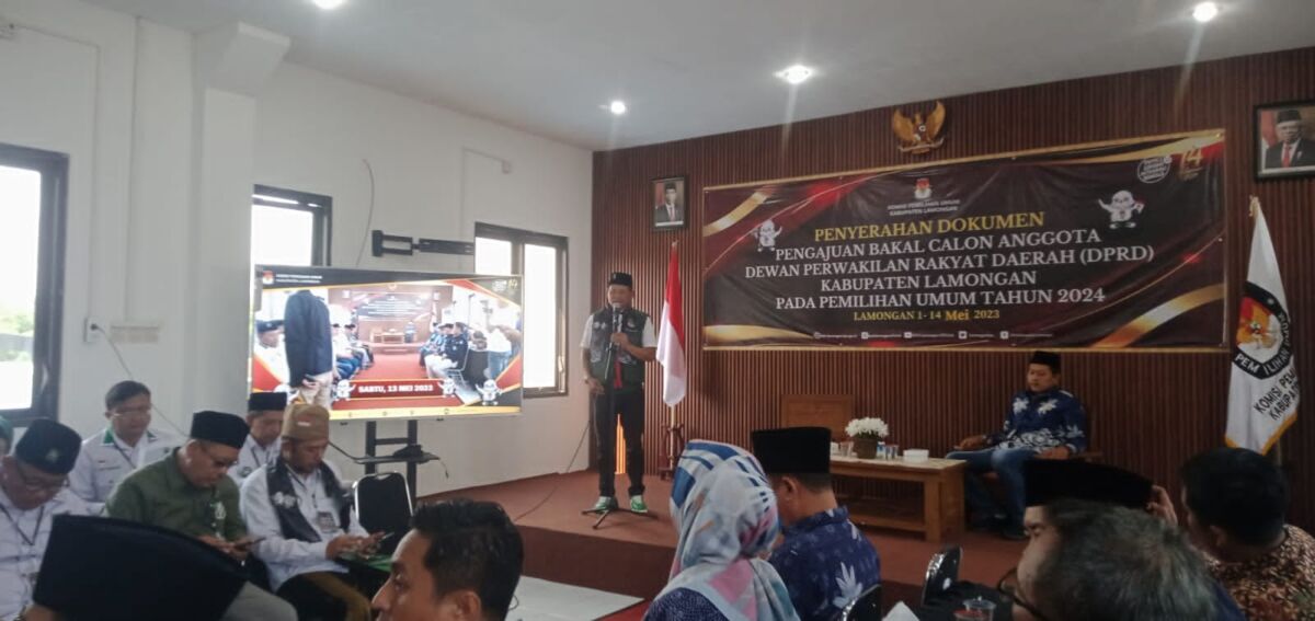 Ketua KPU Lamongan Mahrus Ali telah menerima berkas pendaftaran dari Bacaleg PKB Lamongan serta bersama LO dari PKB bakal melakukan check dan verifikasi terhadap dokumen yang sudah diserahkan. (Manan)
