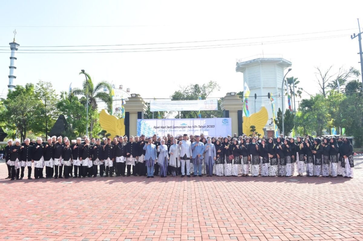 Kabar1lamongan.com – Ada yang berbeda dengan Peringatan Hari Jadi Lamongan tahun ini, diawali dengan ziarah makam leluhur seperti biasanya, malam tasyakuran di setiap wilayah Lamongan, kirab pataka, dan pasamuan agung, ditambah pagi ini Jum’at (26/5/2023) juga diselenggarakan apel secara serentak mulai dari Kantor Pemerintah Kabupaten Lamongan, Kantor-kantor OPD, Pemerintahan Kecamatan, hingga di sekolah-sekolah. Uniknya tata cara pelaksanaan apel keseluruhannya menggunakan Bahasa Jawa.
