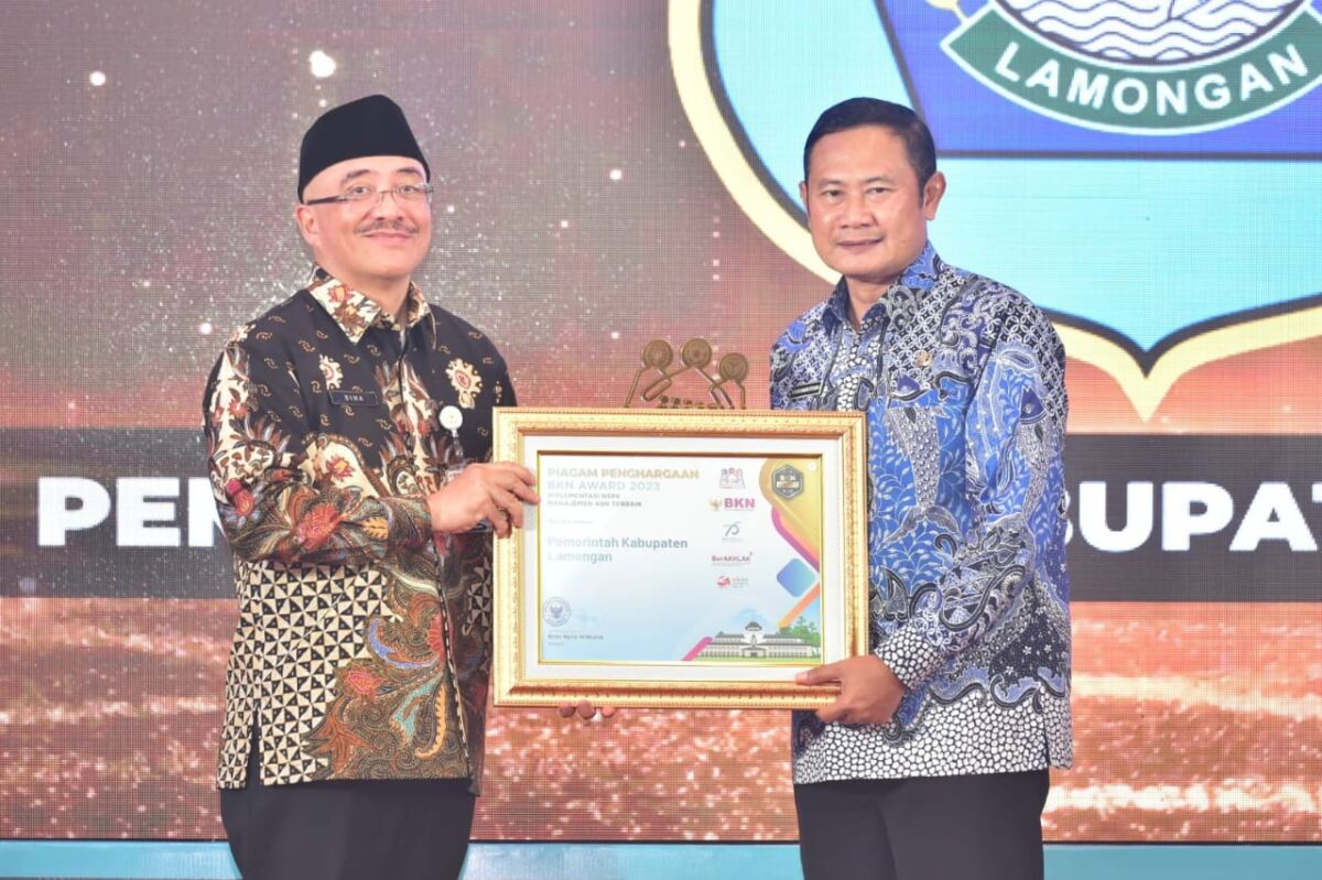 Kabar1lamongan.com – Pemerintah Kabupaten Lamongan kembali dianugerahi penghargaan utama dengan predikat sangat baik pada Badan Kepegawaian Negara (BKN) award 2023. Kali ini Kota Soto mendapatkan penghargaan kategori utama yakni implementasi Norma Standar Prosedur dan Kriteria (NSPK) Manajemen ASN Terbaik.