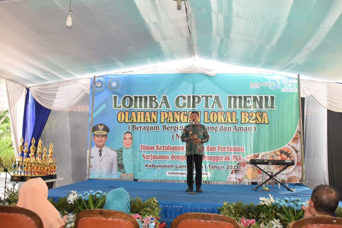 Kabar1lamongan.com – Setelah sebelumnya menggelar Lomba Masak Kuliner Khas Lamongan Otak-otak, kali ini TP PKK (Tim Penggerak Pemberdayaan dan Kesejahteraan Keluarga) menggandeng Dinas Ketahanan Pangan dan Pertanian Lamongan untuk melaksanakan Lomba Cipta Menu Olahan Pangan Lokal B2SA (Beragam, Bergizi, Seimbang, dan Aman) non beras, pada Kamis (22/6) di Halaman Pendopo Lokatantra Kabupaten Lamongan. Membuka pelaksanaan lomba, Bupati Yuhronur Efendi mengatakan bahwa hal ini merupakan cara untuk memanfaatkan potensi makanan dari bahan makanan non beras yang tidak membosankan dan bergizi untuk keluarga.
