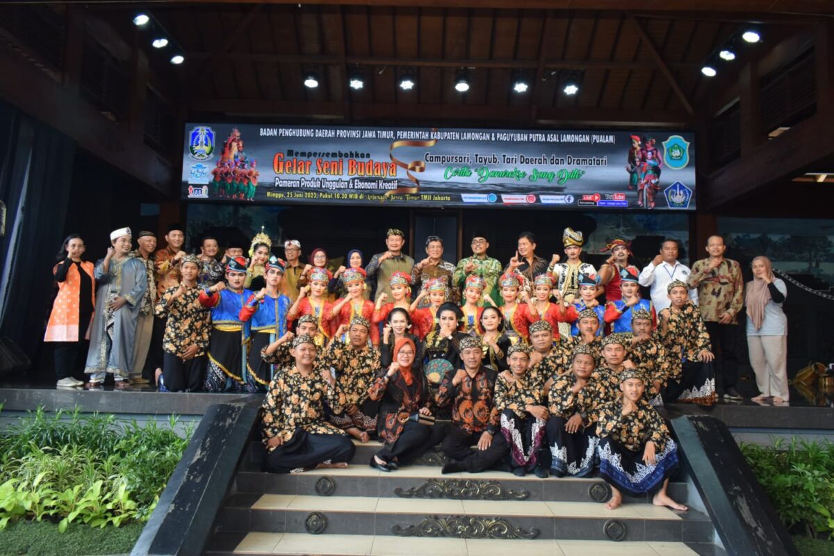 Kabar1lamongan.com – Berbagai seni bertabur kebudayaan ditampilkan Lamongan dalam Pagelaran Seni Budaya Pameran Produk Unggulan dan Ekonomi Kreatif yang dilaksanakan pada Minggu (25/6/2023) di Anjungan Jawa Timur Taman Mini Indonesia Indah. Kegiatan rutin tahunan ini diselenggarakan oleh Badan Penghubung Daerah Provinsi Jawa Timur bersama Pemerintah Kabupaten Lamongan.