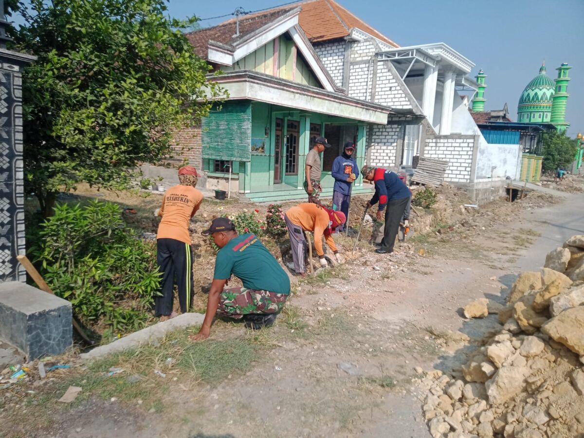 Kabar1lamongan.com – Babinsa Koramil 0812/25 Sarirejo, Sertu Eka bersama warga kerja bakti membangun saluran irigasi desa di Dusun Dampit, Desa Gempoltukmloko Kec Sarirejo, Kabupaten Lamongan, Rabu (28/06/2023).