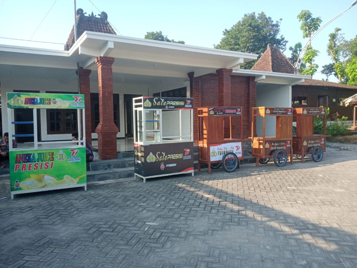 Bantuan berupa gerobak dorong dan Booth UMKM itu diberikan kepada pedagang kecil yang biasa berjualan di area wisata religi makam Sunan Drajat Paciran Lamongan.