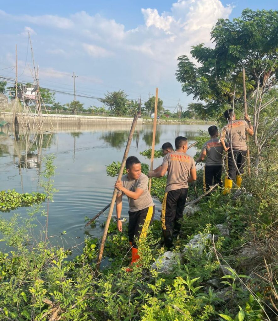 Bakti Sosial Bersih Eceng Gondok, Polres Lamongan Bersama Forkopincam dan Masyarakat Sidomulyo Deket.
