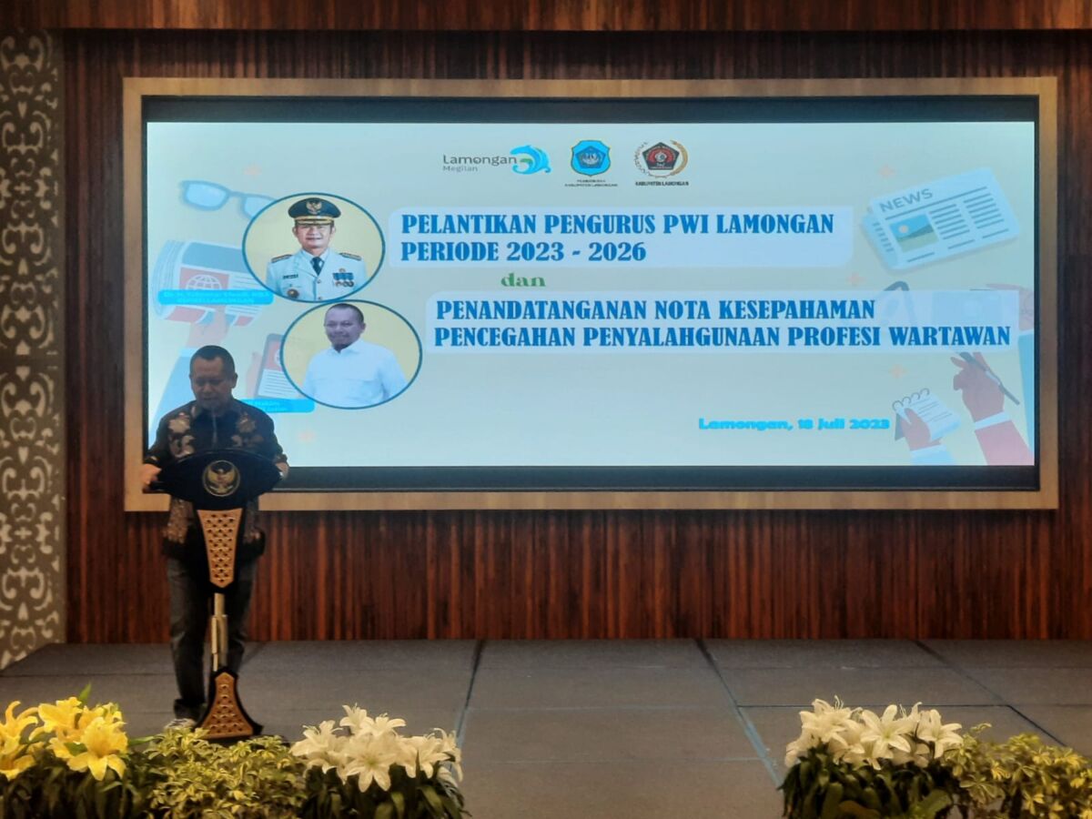 Kegiatan Pelantikan Pengurus PWI Lamongan sekaligus penandatanganan nota kesepahaman pencegahan penyalahgunaan profesi wartawan dengan Kepala pengadilan agama, Kejaksaan negeri, pengadilan negeri, kodim, polres, Ketua DPRD dan pemerintah kabupaten Lamongan.