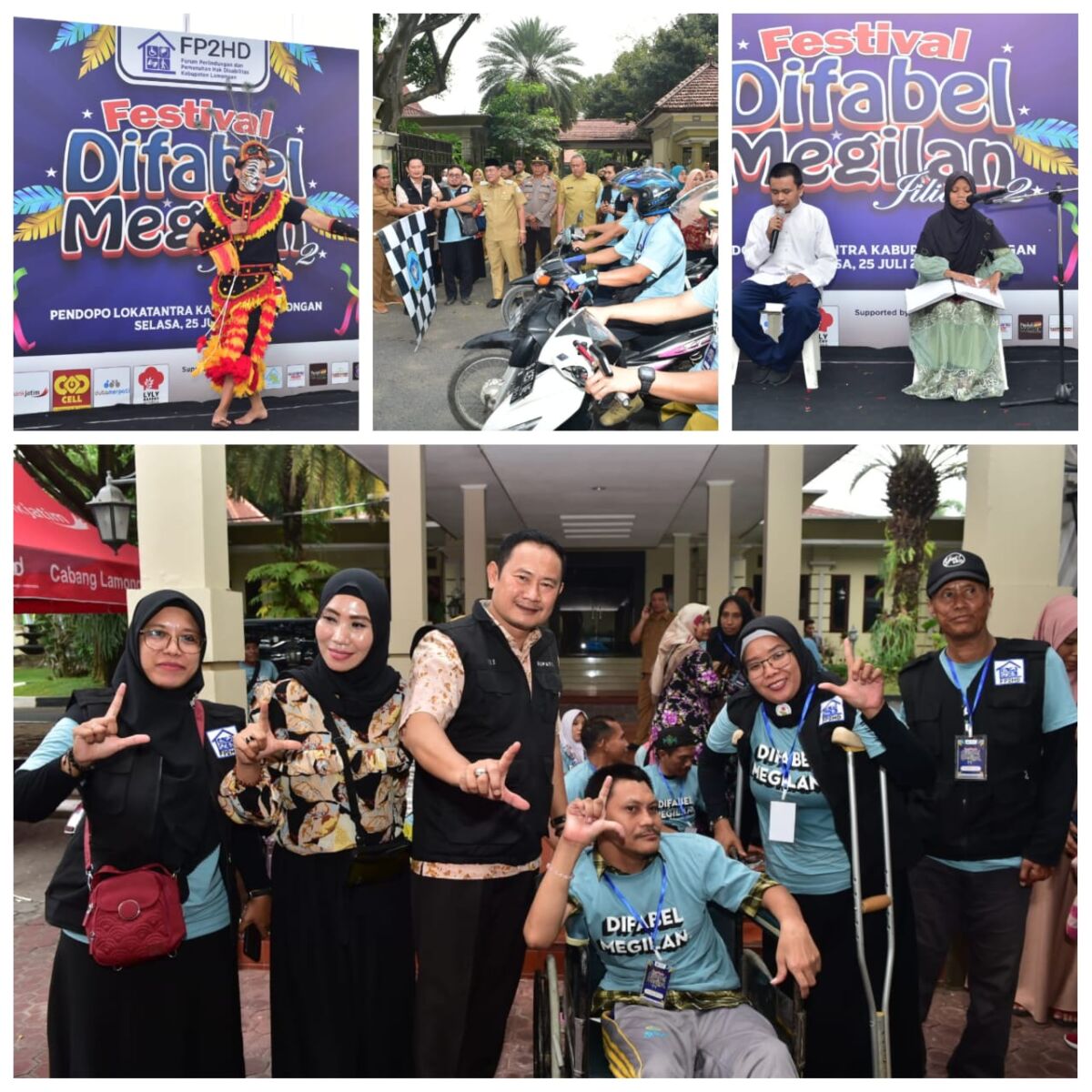 Kabar1lamongan.com – Pemerintah Kabupaten Lamongan terus berusaha memberikan ruang yang baik bagi para penyandang disabilitas, hal ini disampaikan Bupati Lamongan Yuhronur Efendi saat membuka pelaksanaan Festival Difabel Megilan Jilid 2 Tahun 2023 pada Selasa (25/7/2023), di Halaman Pendopo Lokatantra. Beliau mengungkapkan bahwa Pemkab Lamongan membuka ruang seluas-luasnya bagi setiap lini bagian dari Lamongan yang ingin turut serta membangun Lamongan, termasuk di dalamnya FP2HD (Forum Perlindungan dan Pemenuhan Hak Disabilitas), dengan mengikutsertakannya dalam musrenbang perumusan perencanaan pembangunan Lamongan.