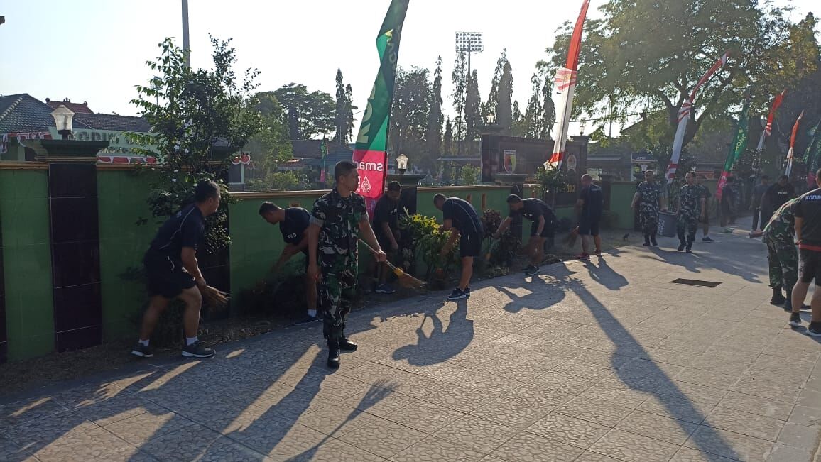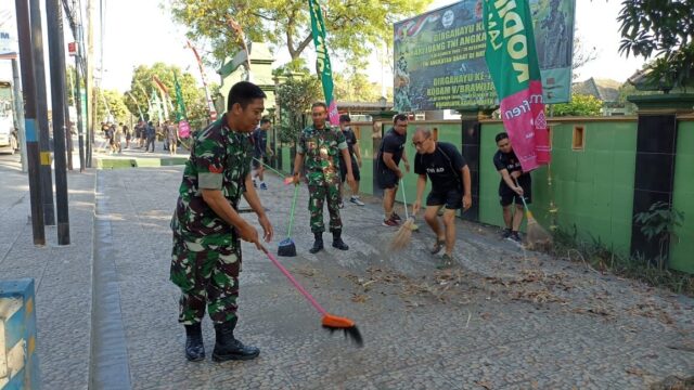 Kabar1lamongan.com Sebagai upaya dalam menjaga kebersihan dan keindahan di Makodim 0812/Lamongan, Para Anggota Staf dan di bantu oleh Anggota jajaran Kodim 0812 Lamongan, melaksanakan kegiatan bersih – bersih di seputaran Makodim utamanya depan mako.
