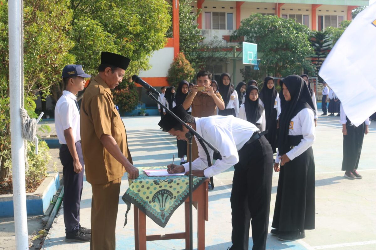 Kabar1lamongan.com – SMP Negeri 1 Ngimbang menggelar upacara pelantikan pengurus Osis masa khidmat 2023-2024, Senin (04/09/2023).
