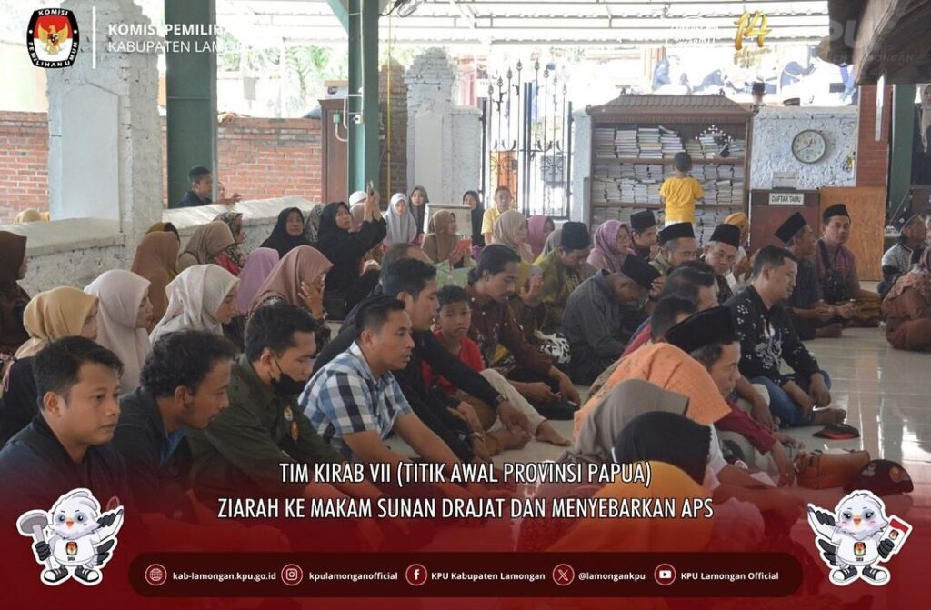 Setelah melakukan penyebaran APS di Pasar Blimbing, KPU dan Badan Adhoc menuju Makam Sunan Drajat, Tak hanya berkunjung tapi juga untuk melakukan ziarah dan doa bersama, pada pukul 11.00-13.00 WIB.