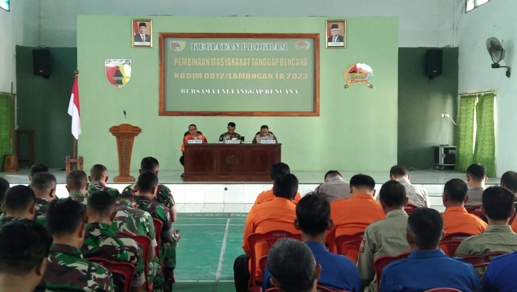 Kabar1lamongan.com – Guna mengantisipasi dan kesigapan dalam menghadapi berbagai macam bencana,Kodim 0812/Lamongan bersama Tagana Kabupaten Lamongan menyelenggarakan Program Pembinaan Masyarakat Tanggap Bencana Diwilayah Kodim 0812/Lamongan TA. 2023 di aula Kadet Soewoko,