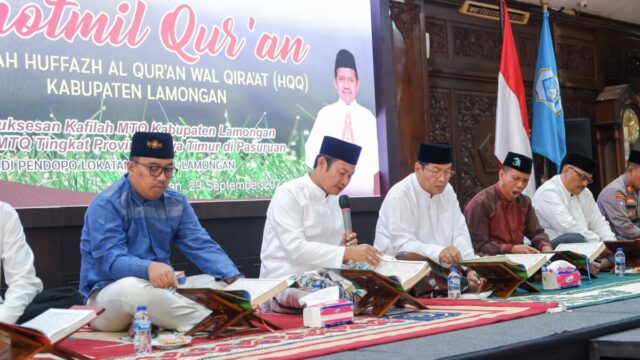 Kabar1lamongan.com – Pemerintah Kabupaten Lamongan melaksanakan Khotmil Qur’an Jam’iyyah Huffazh Al Qur’an Wal Qira’at (HQQ) Kabupaten Lamongan, di Pendopo Lokatantra Kabupaten Lamongan, Selasa (26/9/2023).