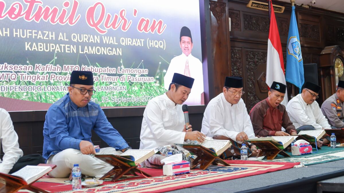 Dikatakan, Bupati Lamongan Yuhronur Efendi, melalui khotmil Qur’an tersebut diharapkan dapat mengiringkan doa dan keberkahan Al-Quran untuk kesuksesan kafilah-kafilah Lamongan dalam berlaga di Musabaqah Tilawatil Quran (MTQ) tingkat Provinsi Jawa Timur di Pasuruan mendatang.