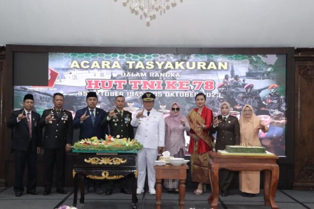 Kabar1lamongan.com – Dalam rangka memperingati HUT ke 78 Tentara Nasional Indonesia, Kabupaten Lamongan menggelar acara tasyakuran di Pendopo Lokatantra,Kamis(05/10/2023).