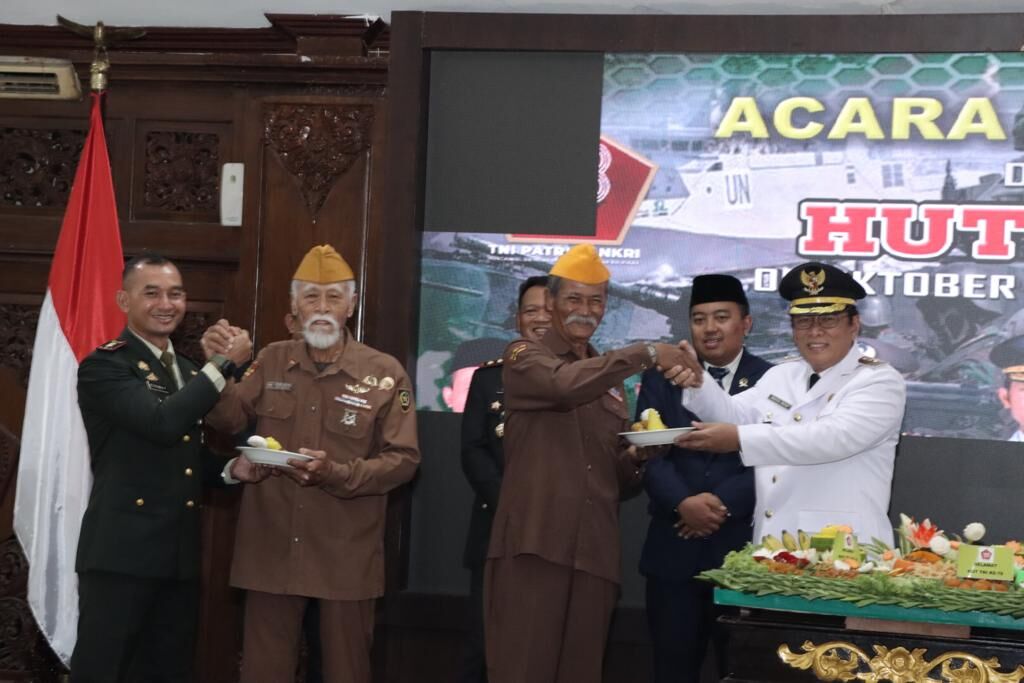 Momen pemotongan tumpeng HUT TNI ke 78 di Pendopo Lokatantra Lamongan
