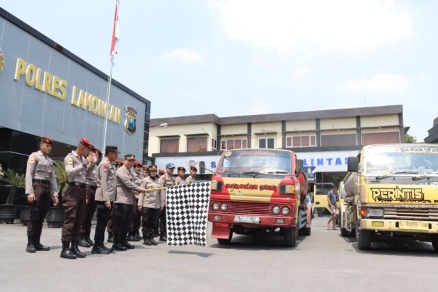 Peduli Kekeringan, Polres Lamongan Distribusikan 10 Truck Air Bersih