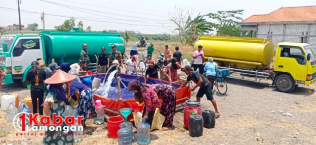“Bantuan kemanusiaan ini di berikan oleh Pemdes Sidobinangun bersama Polsek Deket, wujud sinergi bersama ini dengan pendistribusian 8 mobil tangki air dan dengan kapasitas 5000 ribu liter yang di berikan gratis, langsung distribusikan menuju penampungan warga yang sudah di siapkan di titik dusun di Desa Sidobinangun, Kecamatan Deket, Kabupaten Lamongan,” terang Kades Sidobinangun, Anang Fuadi.