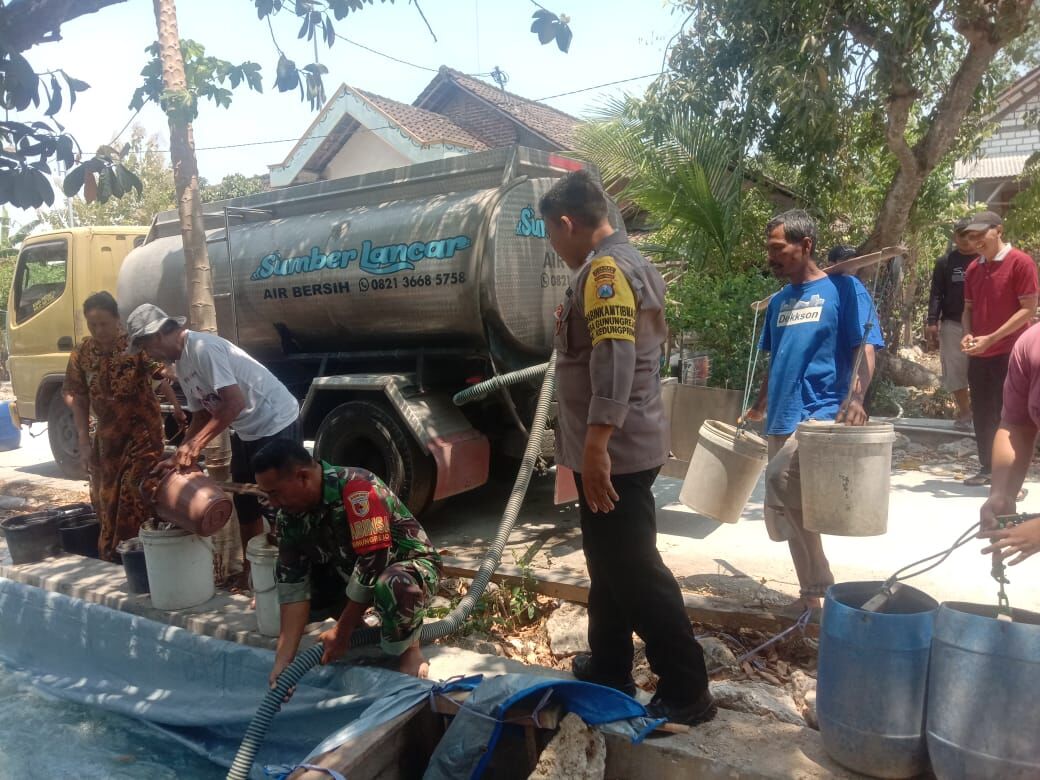 “Hari ini Polsek Kedungpring, Polsek Kembangbahu,Polsek Sarirejo dan Polsek Sugio dengan total 50.000 liter air bersih,”terang AKBP Yakhob.