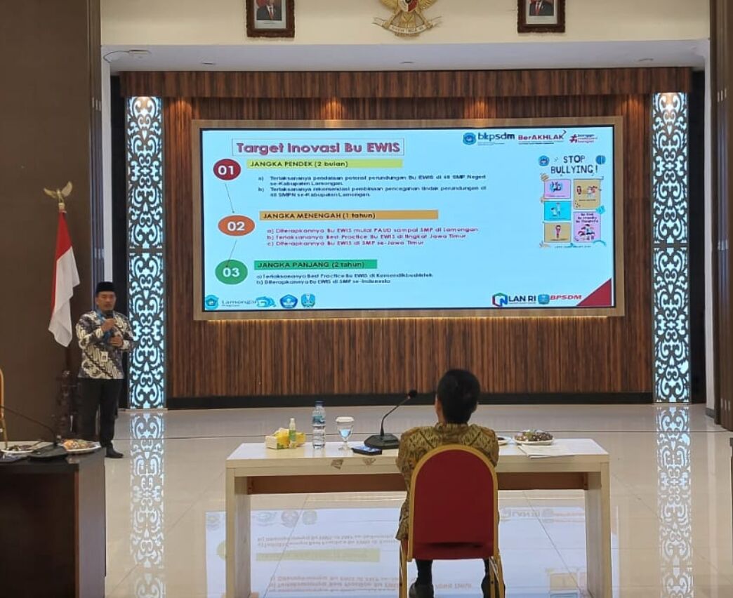Inovasi Bu EWIS yang diciptakan oleh Chusnu Yuli Setyo, selaku Kabid SMP, masuk 15 besar seleksi SMART ASN yang diselenggarakan oleh BKPSDM Kabupaten Lamongan pada tanggal 9 November kemarin.