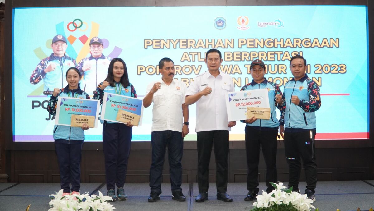 Tidak hanya atlet, penyerahan yang didampingi ketua Komite Olahraga Nasional Indonesia (KONI) Kabupaten Lamongan Heri Pranoto juga diberikan kepada para official. Dengan klasifikasi emas Rp. 6 juta, perak Rp 4,5 juta, perunggu Rp 3 juta, serta, perunggu beregu putra 9 juta, dan perunggu beregu putri Rp 7,5 juta.
