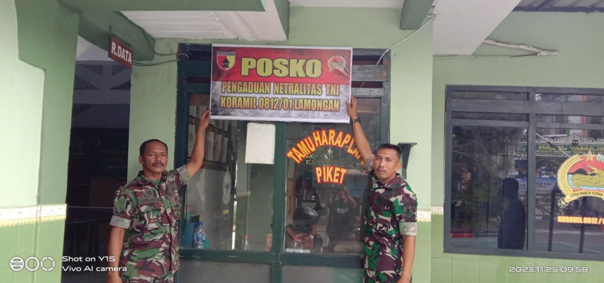 Koramil Jajaran Kodim 0812/Lamongan Dirikan Posko Pengaduan Netralitas TNI. Foto : kabar1 (28/11/23)