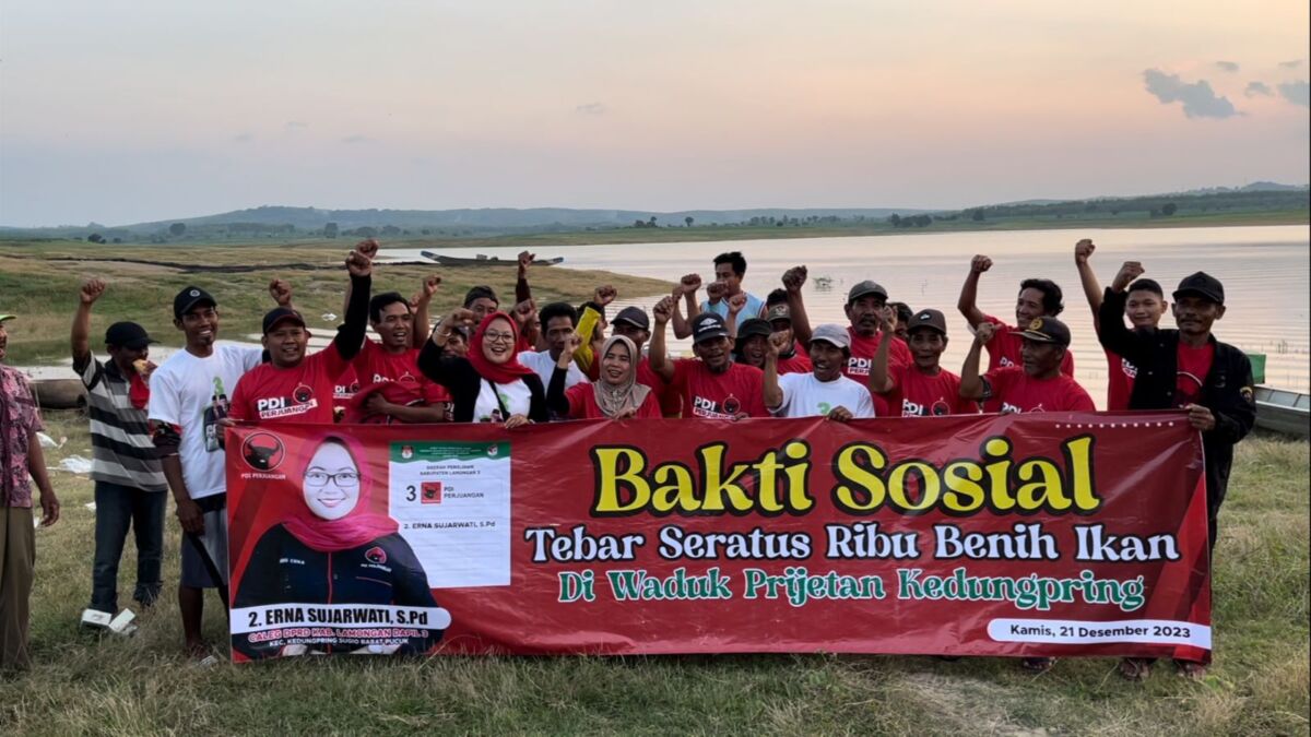 Kabar1lamongan.com – Bakti Sosial Tebar 100.000 Benih Ikan di Waduk Prijetan Kedungpring Lamongan di Lakukan Ketua TPM (Tim Pemengan Muda) Ganjar Mahfud Lamongan, Erna Sujarwati, S. Pd yang sekaligus adalah Caleg DPRD Lamongan dari PDI Perjuangan dapil 3 Kabupaten Lamongan.