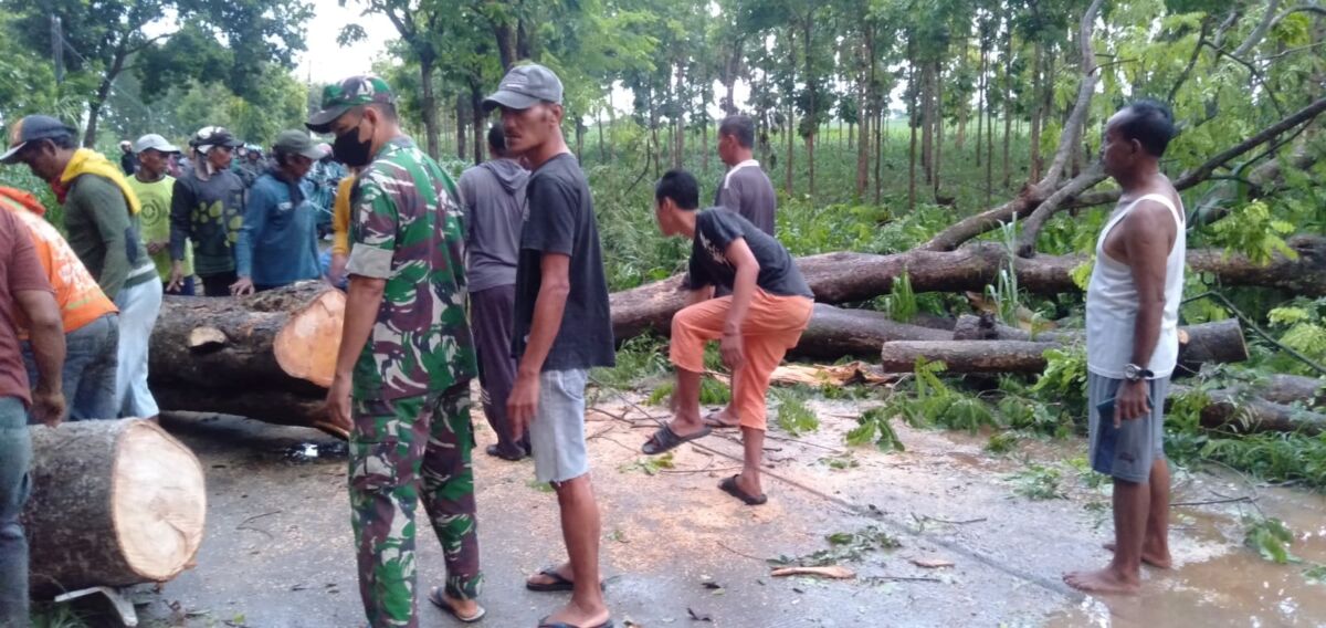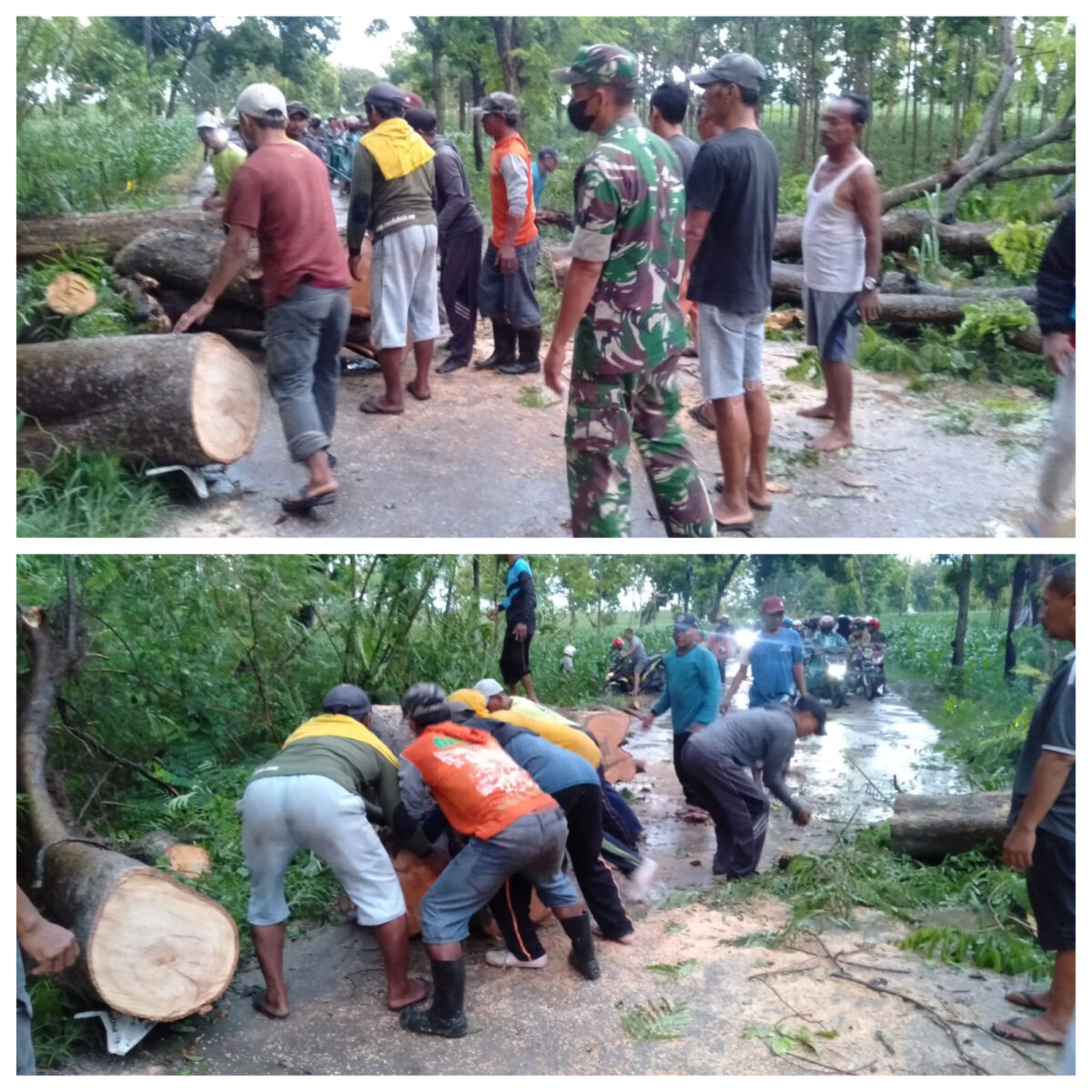 Sinergitas Babinsa 0812/07 Bluluk Bersama Warga Bantu Evakuasi Pohon Tumbang