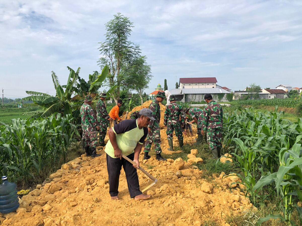 Kegiatan tersebut dilakukan bintara pembinaan Desa (Babinsa) Serma Asmuni bersama anggota Koramil 0812/09 Mantup terlihat bergotong royong bersama warga dalam proses pengurukan jalan dan pemerataan jalan persawahan dengan menggunakan pedel untuk mempermudah akse pertanian