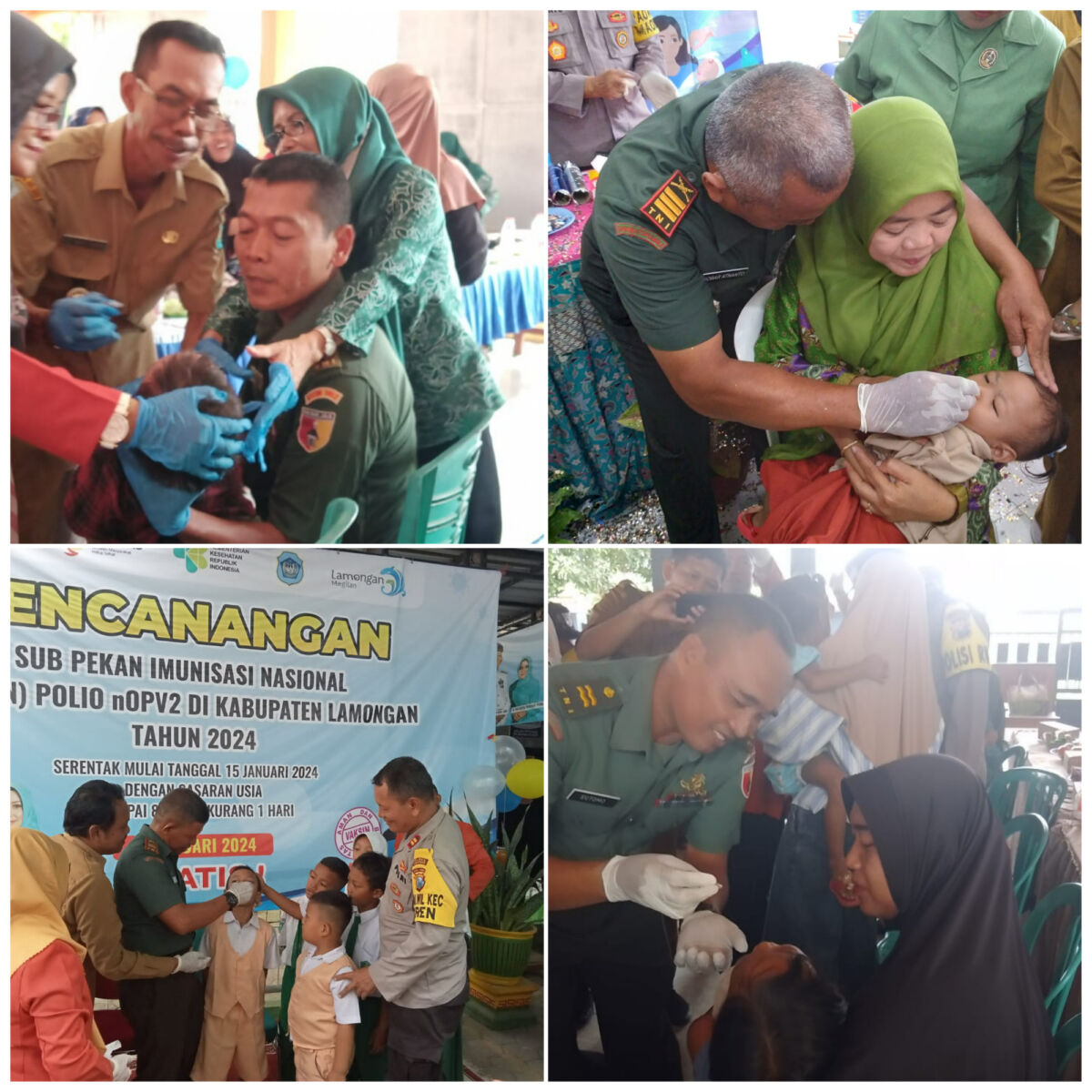 Salah satunya,seperti halnya yang di lakukan oleh Koramil 0812/19 Laren Lettu Inf Sugeng dalam mendampingi pelaksanaan kegiatan Sub PIN (Pekan Imunisasi Nasional) Polio yang dilaksanakan serentak di Kabupaten Lamongan yang diselenggarakan oleh petugas kesehatan dari Puskesmas masing masing wilayah, Senin (14/01/2024).
