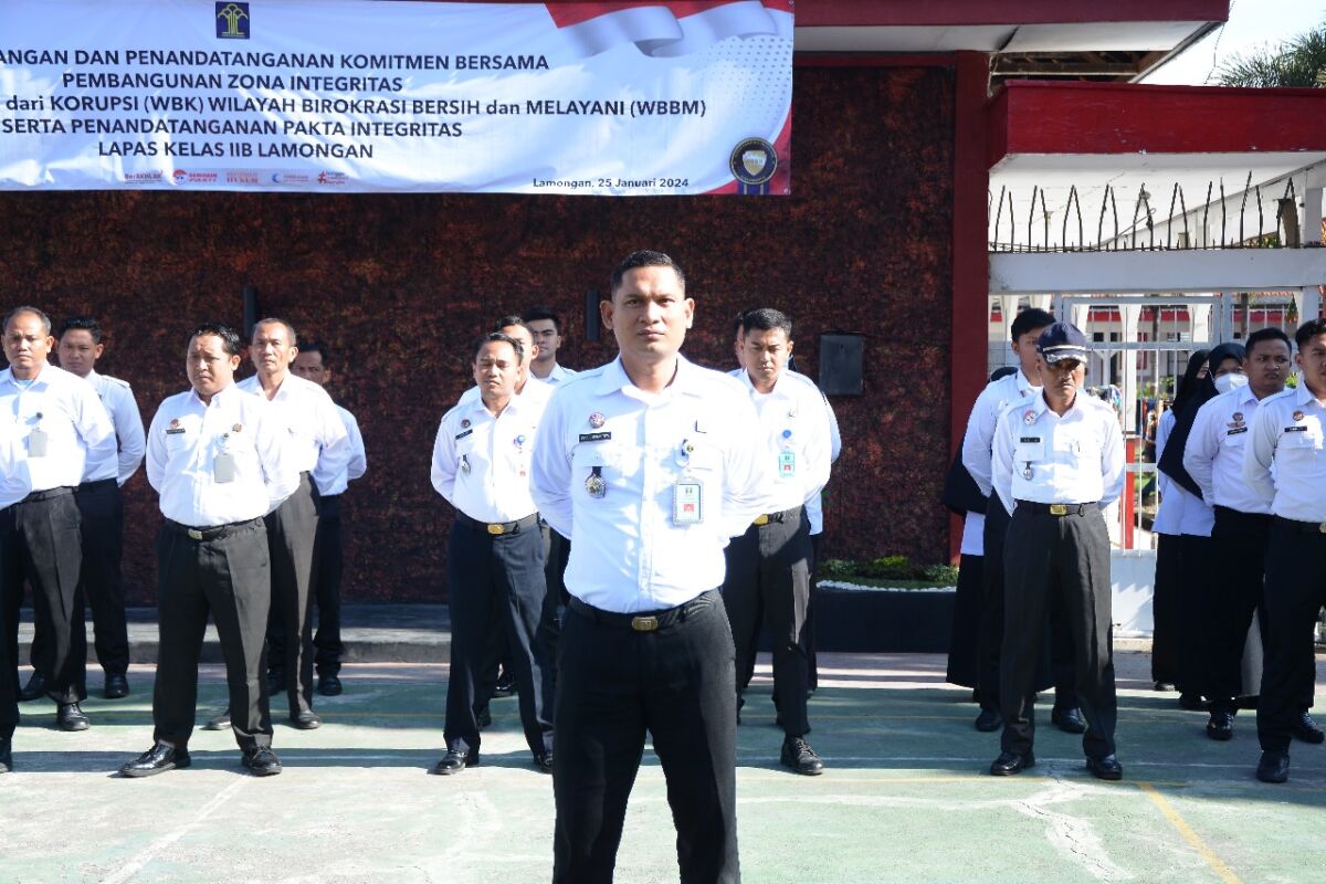 Kegiatan Penandatanganan komitmen Bersama dilaksanakan di Lapangan Serbaguna Lapas Lamongan yang dipimpin dan disaksikan secara langsung oleh Kalapas Kelas IIB Lamongan, Mahrus. Hadir sebagai peserta upacara tersebut seluruh Pejabat Struktural, JFT, dan Staf serta Anggota Regu Pengamanan.