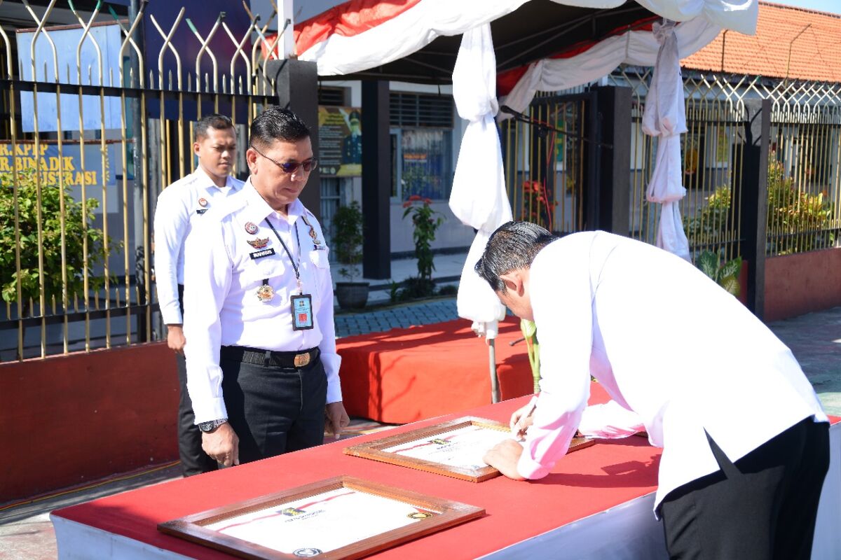 Kabar1lamongan.com – Kamis (25/01/2024) Lembaga Pemasyarakatan Kelas IIB Lamongan Kanwil Kemenkumham Jawa Timur melakukan Apel deklarasi kinerja Pencanangan dan Penandatanganan Pakta Integritas dan Komitmen Bersama Pembangunan Zona Integritas Menuju Wilayah Bebas dari korupsi / Wilayah Birokrasi Bersih dan Melayani (WBK / WBBM) Tahun 2024.