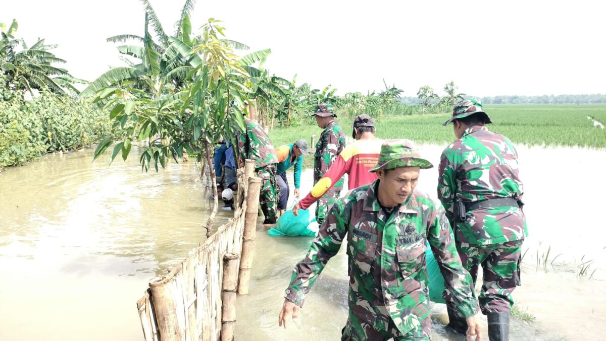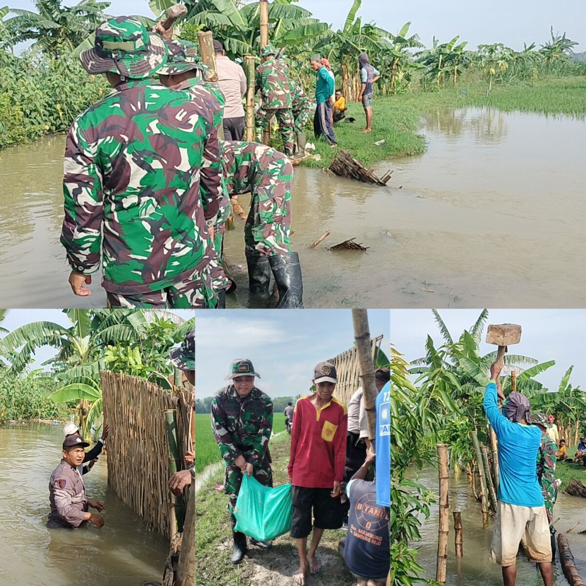 Gerak Cepat Koramil 0812/12 Modo Bersama Warga Dalam Penanggulangan Tanggul Jebol
