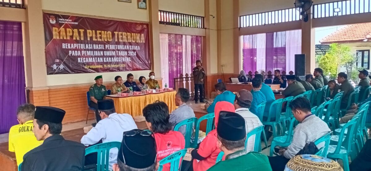 Kabar1lamongan.com – Batih Tuud koramil 0812/15 Karanggeneng Pelttu Dul Kholil mewakili Danramil hadiri rapat pleno terbuka Pemilihan Umum 2024 di Aula Kantor Kecamatan Karanggeneng, Kabupaten Lamongan. Selasa (20/02/2024)