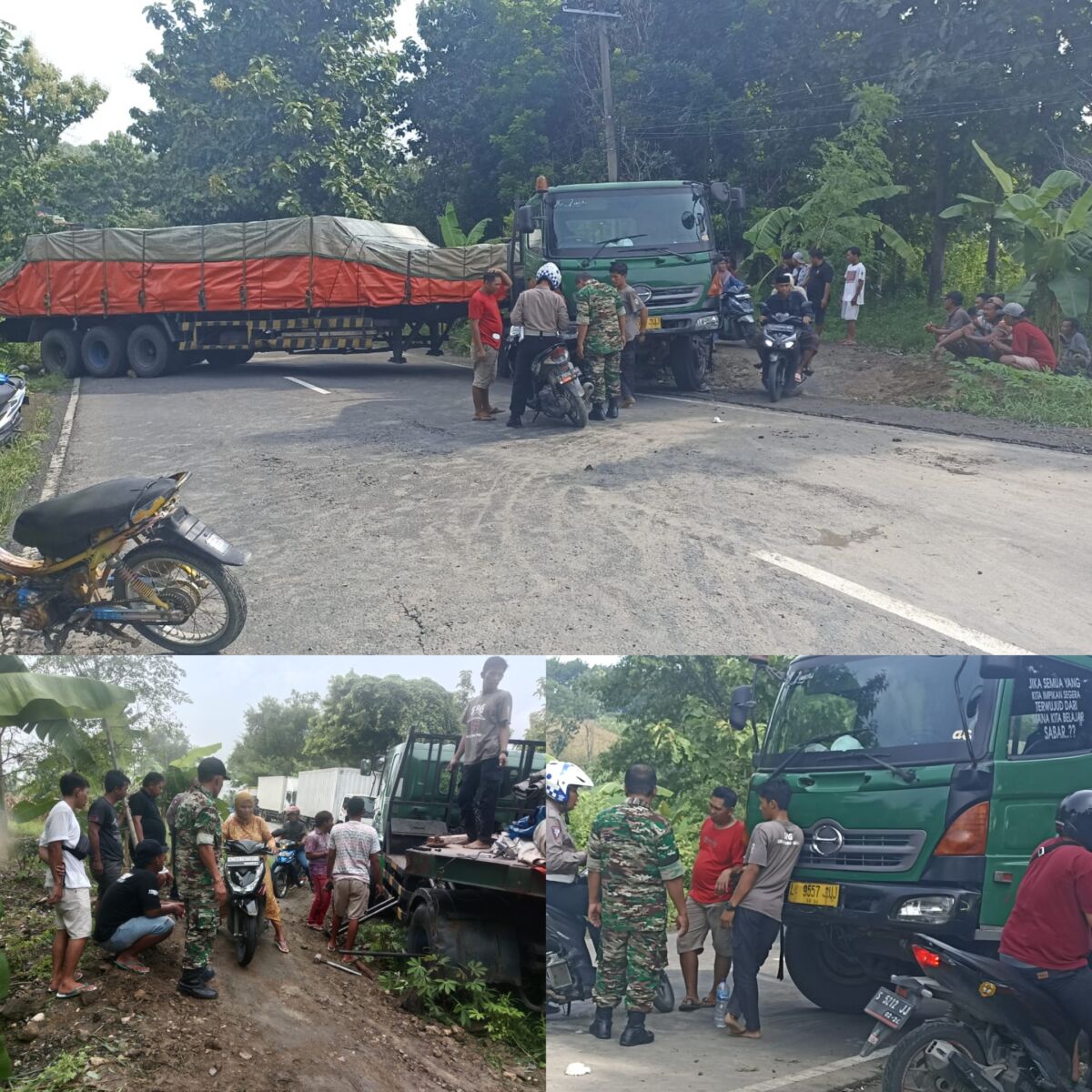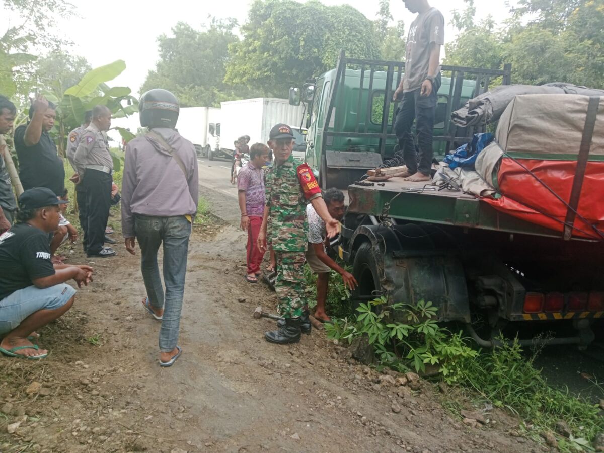 Kesigapan Babinsa Koramil 0812/06 Ngimbang Bantu Evakuasi Truk Kecelakaan