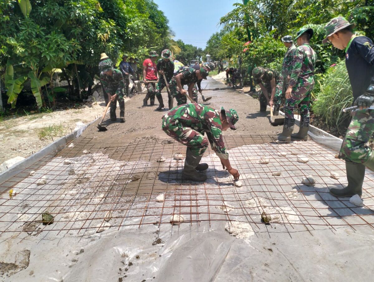 Dalam TMMD kali ini,” setiap harinya, personel satgas TMMD ke119 Kodim 0812 Lamongan bersama masyarakat bergotong-royong melaksanakan pengecoran jalan rabat beton yang mana sebagai akses utama jalan penghubung.