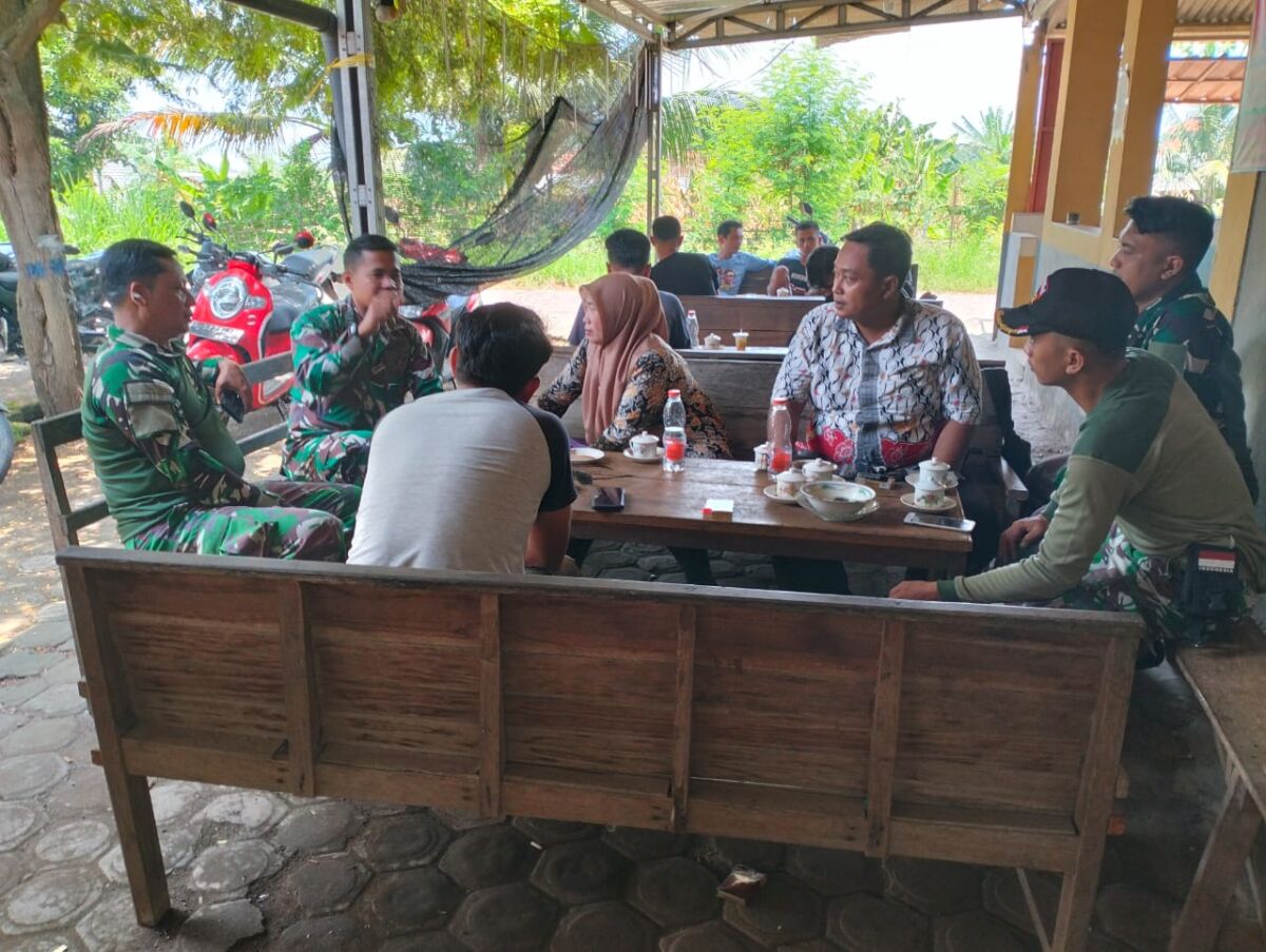 Kabar1lamongan.com – Disela-sela waktu istirahat, prajurit TNI yang tergabung dalam Satgas TMMD Ke 119 Kodim 0812/Lamongan yang memiliki unsur dari Danpok di setiap sasaran bersama Danki Satgas TMMD ke 119 Lettu Inf Lambangwan dan Danramil 0812 /18 Brondong Kapten Inf Ali Mahmud bersama Dinas PMD Kab Lamongan menyempatkan saat jam istirahat untuk nongkrong di warung kopi sambil berdiskusi untuk progres dalam tingkatan pembangunan yang berada di desa Brengkok Kec Brondong Kab Lamongan, yang berjarak tak jauh dari lokasi sasaran.