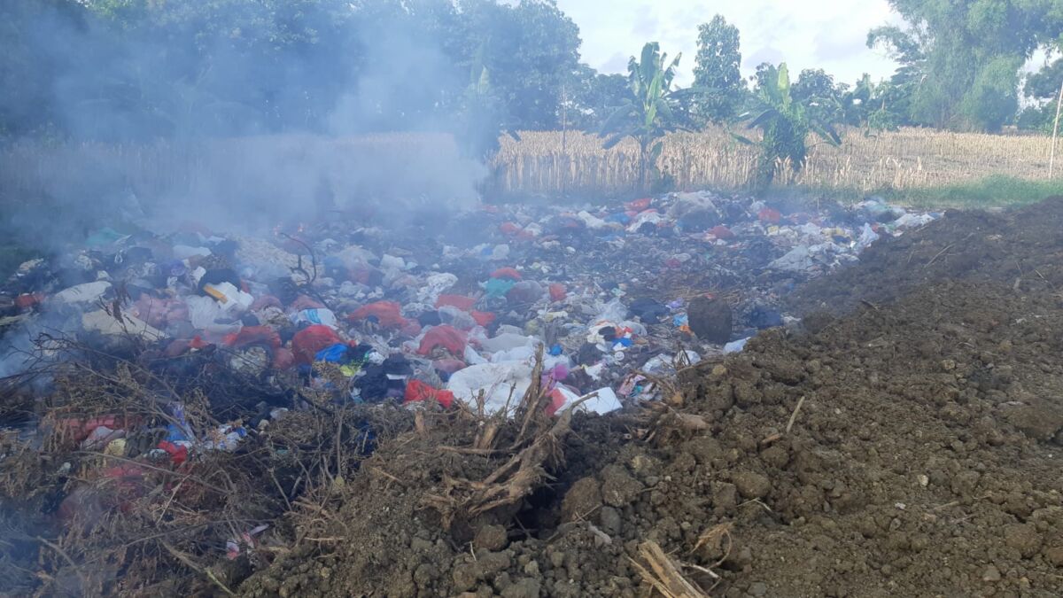 Mengetahui hal tersebut, Dansatgas TMMD, Letkol Arm Ketut Wira Purbawan S.I.P.,M.Han., langsung meninjau ke lokasi dan memerintahkan Anggota Satgas untuk membersihkan dan menimbun tumpukan sampah tersebut dengan tanah.