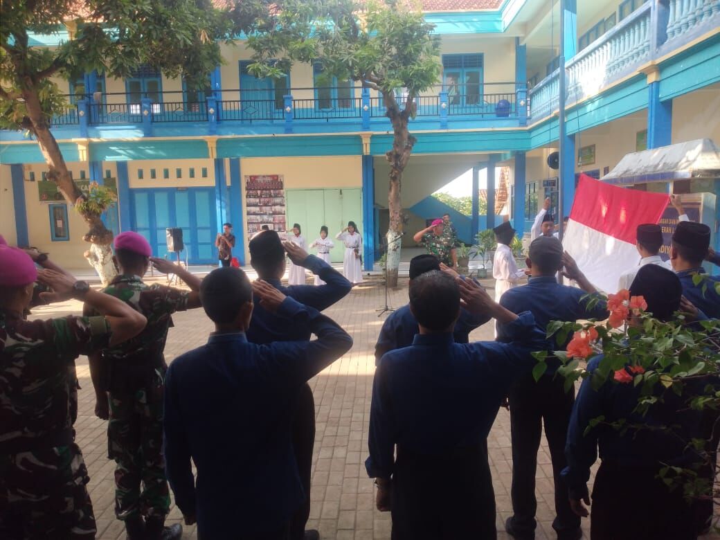 Seperti halnya di sekolah MI Darul Ulul dan di sekolah Al-Maarif serta MTS Muhamadiyah Brengkok memberikan wawasan dan pembelajaran kepada generasi muda,” kata Danki Satgas TMMD ke 119 Lettu Inf Lambangwan saat menjadi pembina upacara dalam Senin Berkibar di MTS Muhamadiyah Brengko, Kecamatan Brondong, Kabupaten Lamongan.
