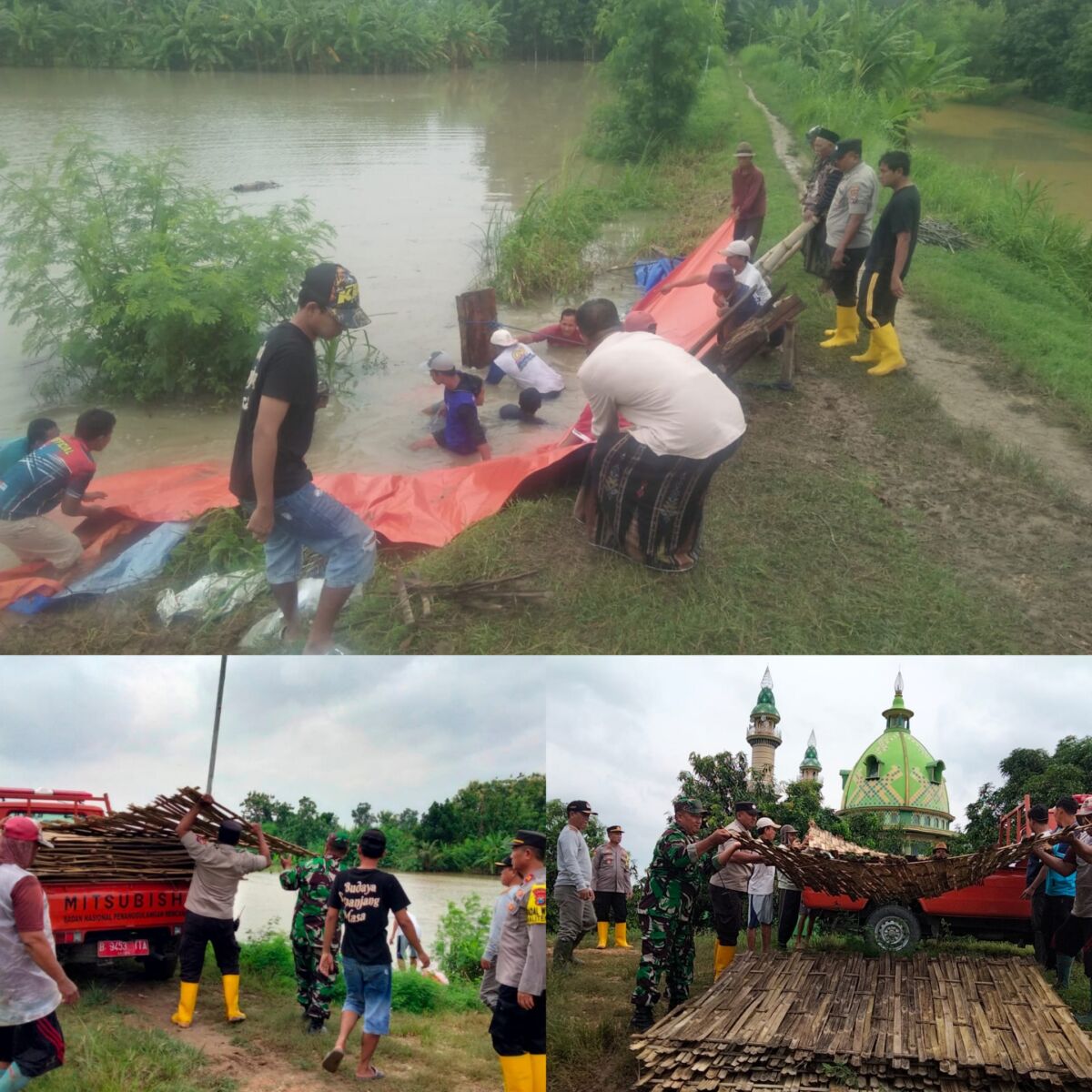 Sinergitas TNI Polri dan BPBD Bersama Masyarakat Dalam Perbaikan Tanggul Jebol