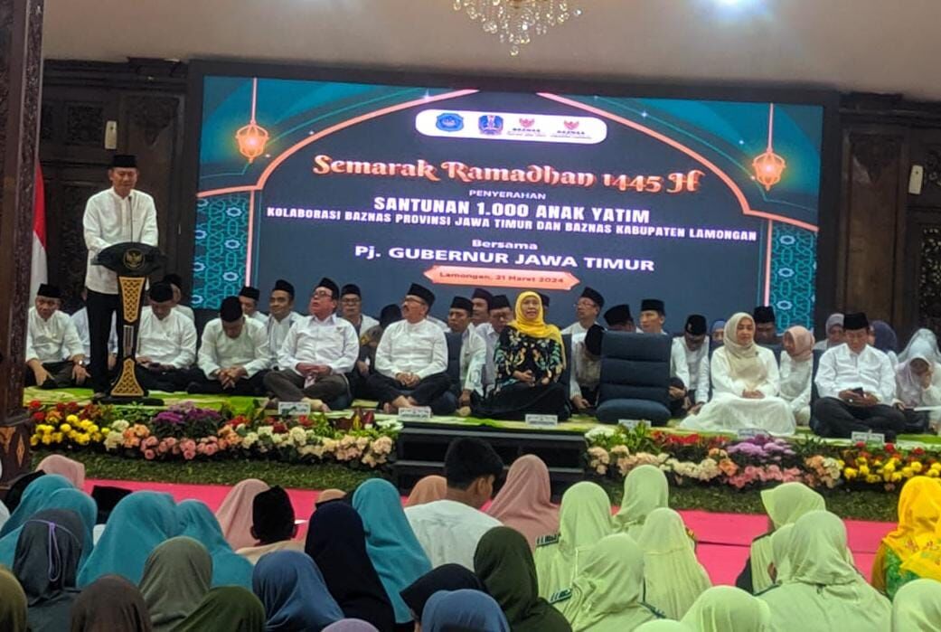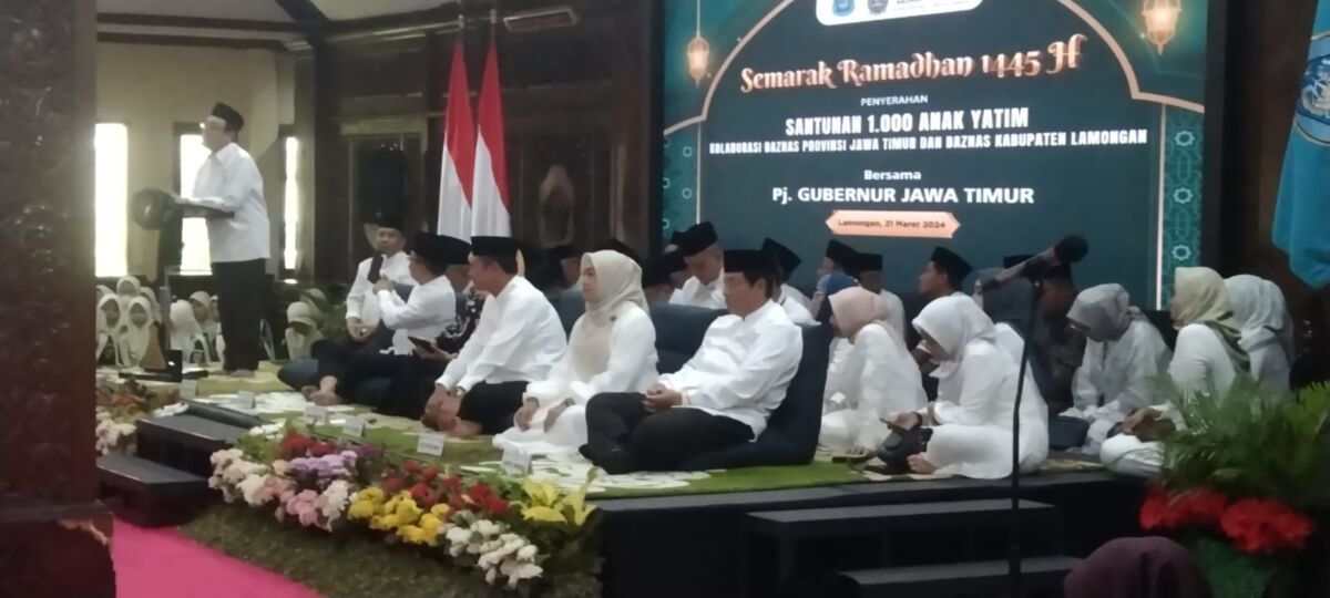 Bupati Lamongan, Dr. H.Yuhronur Efendi MBA.,M.Ek., dalam sambutannya menyampaikan apresiasi kepada BAZNAS Jawa Timur dan BAZNAS Kabupaten Lamongan atas terselenggaranya kegiatan ini. Beliau berharap santunan ini dapat membantu meringankan beban anak-anak yatim piatu di Kabupaten Lamongan.