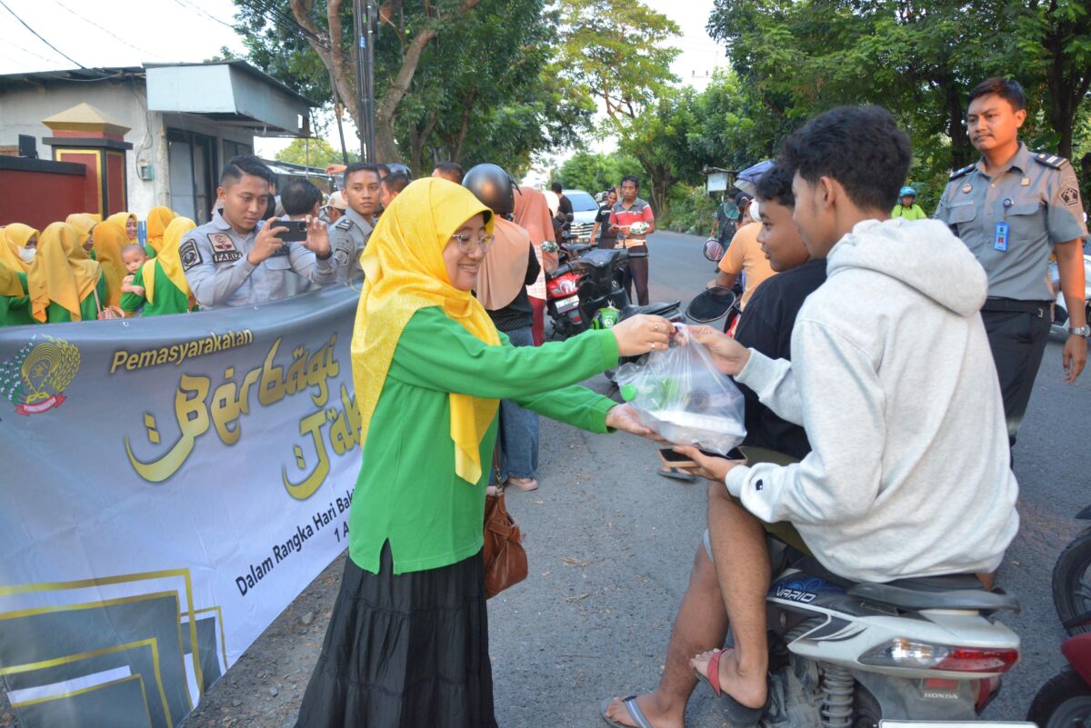 Kabar1lamongan.com – Memperingati Hari Bhakti Pemasyarakatan Ke 60 Lembaga Pemasyarakatan (Lapas) Kelas IIB Lamongan Kantor Wilayah (Kanwil) Kemenkumham Jatim berbagi keberkahan dengan membagikan paket takjil jelang buka puasa kepada masyarakat, Senin (01/04/24).
