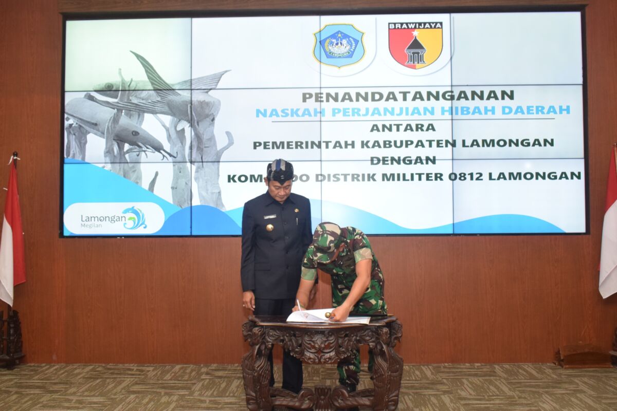 Jelang Pilkada Serentak 2024, Dandim 0812/Lamongan Hadiri Penandatanganan Naskah Perjanjian Hibah Daerah (NPHD)